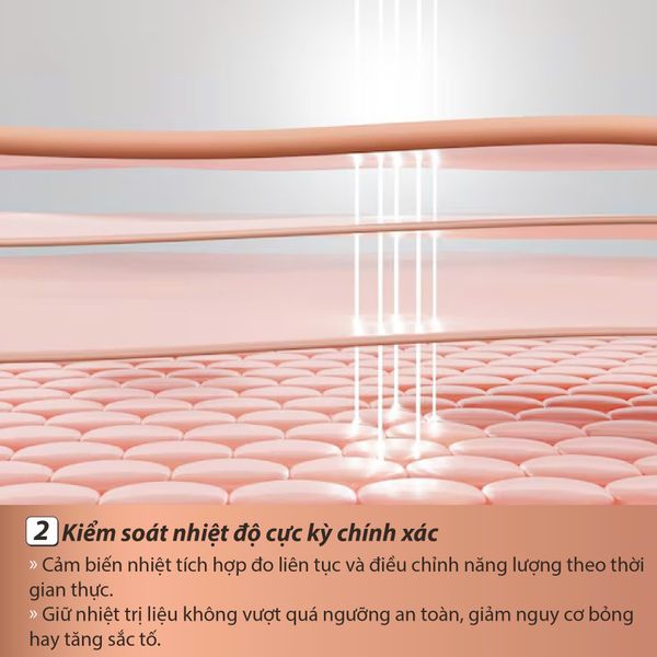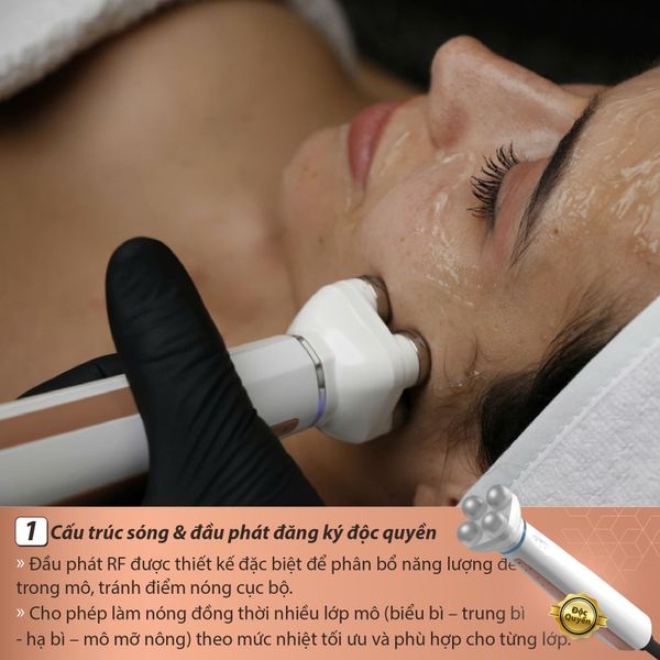 - Xung RF diathermic truyền năng lượng sâu vào mô: sinh nhiệt an toàn.