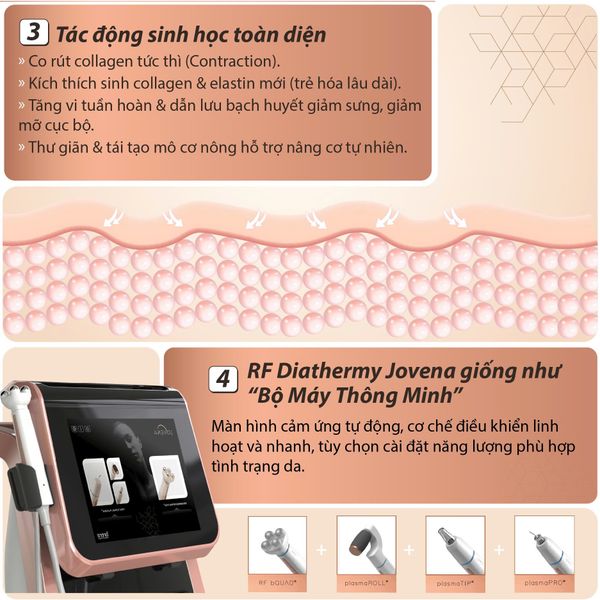 Jovena, thiết bị y khoa thẩm mỹ cao cấp từ Brera Medical (Italy), mang đến công nghệ độc quyền RF Diatermocontraction®, giải pháp kích cơ và tái tạo da cùng lúc, đã được kiểm chứng lâm sàng.